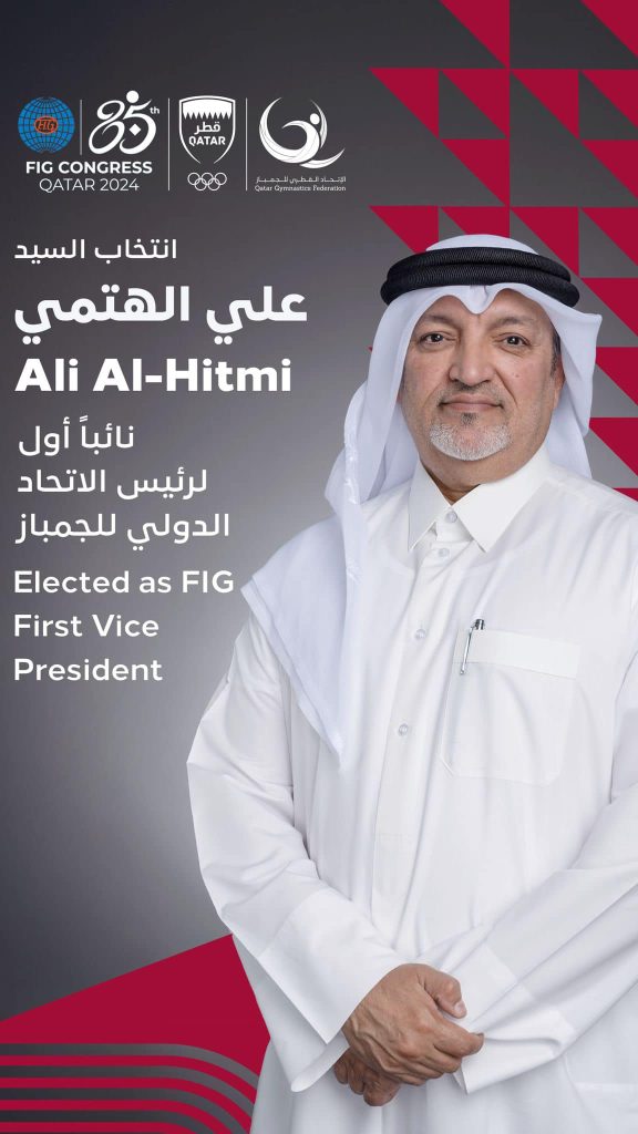 يتقدم الاتحاد العراقي للجمباز بأسمى التهاني والتبريكات إلى الأستاذ علي الهتمي بمناسبة إعادة انتخابه نائباً أول لرئيس الاتحاد الدولي للجمباز خلال الكونغرس الخامس والثمانين الذي تستضيفه الدوحة.