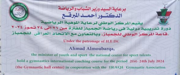 Under the patronage of His Excellency the Minister of Youth and Sports, Dr. Ahmed Al-Mubarqa, the Ministry of Youth and Sports, the National Center for Talented Care, in cooperation with the Iraqi Gymnastics Federation, is holding an international gymnastics training course. This international session will last for four days, from 21 to 24 July 2024.
